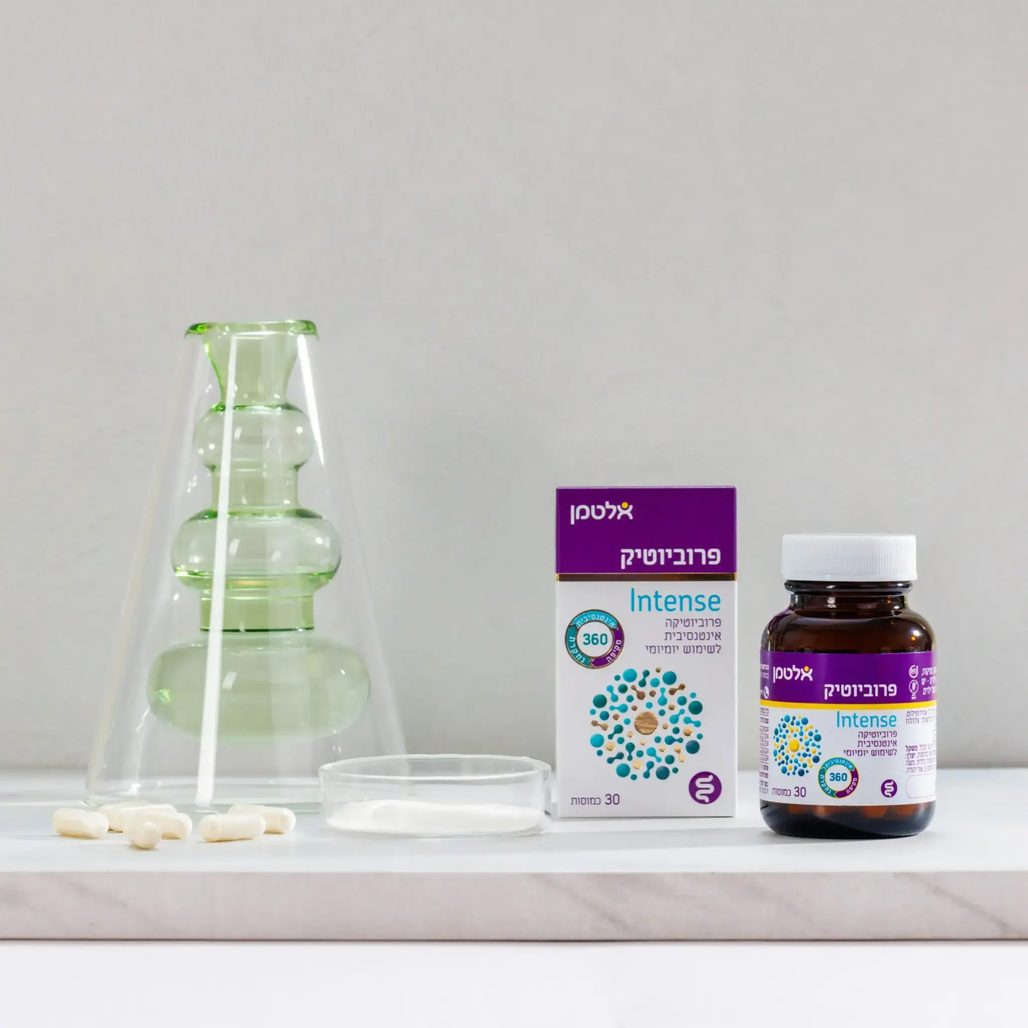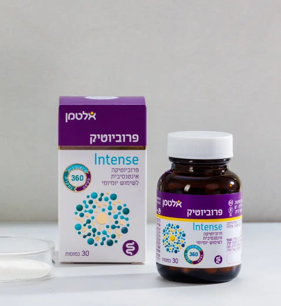 פרוביוטיקה לפעילות אינטנסיבית המיוצרת בטכנולוגיה פטנטית- Bio Protector. פרוביוטיק אינטנס מכילה את הפורמולה הפרוביוטית HOWARU® restore אשר נחקרה קלינית. כל כמוסה מכילה 25 מיליארד חיידקים מחמישה זנים שונים, עם זן הלקטובצילי L. acidophilus NCFM הנחקר בעולם Bio Protector טכנולוגית ייצור פטנטית בעלת פעילות הגנה ביולוגית המבטיחה חיי מדף ארוכים על ידי: -שמירה על יציבות החיידקים והגעתם אל המעי. -הגנה על החיידקים הפרוביוטים מפני חדירת לחות מהסביבה.